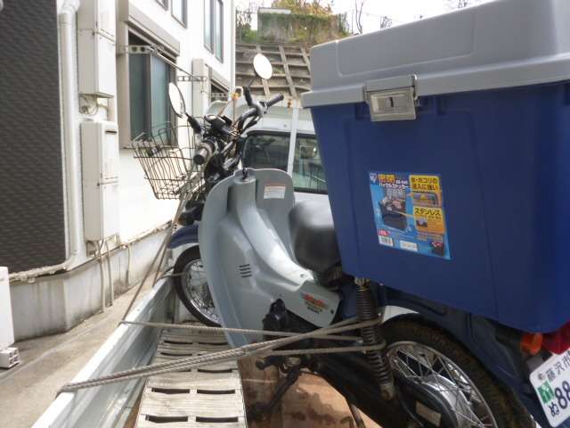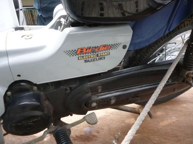 バーディー50 修理 2025/04/21 横浜市南区の「A」様のご依頼です。 「しばらく放置していた為、バッテリーがあがりエンジンの始動が出来ません。」 キャブレター清掃、プラグ・バッテリー交換 ついでにリアのBOXの取り付けを行いました。